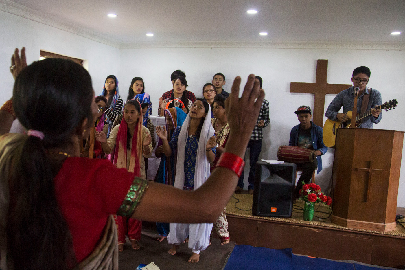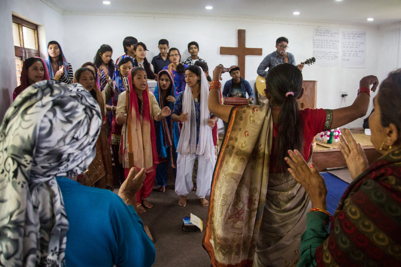 Nepalese Christians dance, sing and pray during a weekly church service in a small village of Tikhatal, in the Dolakha region of Nepal, July 15, 2017. (Photo Credit/Tara Todras-Whitehill/European Journalism Centre/Vignette Interactive)