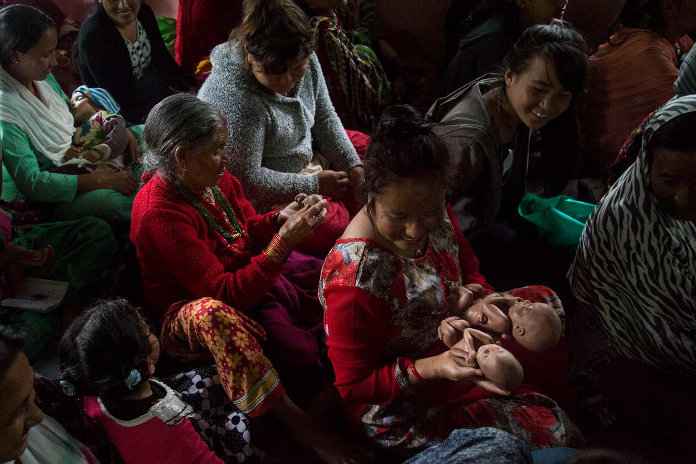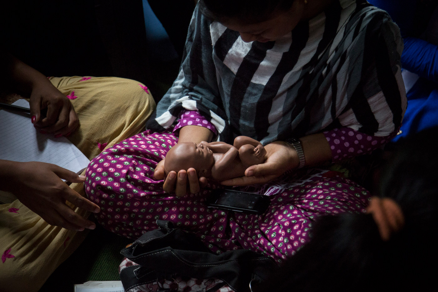 Nepalese Christians pass around models of fetuses provided by Soman Rai, a pastor who founded the non-profit Voice of Fetus Nepal, during his presentation about why women shouldn't have abortions because it is killing a fetus, at a small church in the village of Shilaprabat, Sindhupalcholk district, Nepal, July 14, 2017. (Photo Credit/Tara Todras-Whitehill/European Journalism Centre/Vignette Interactive)