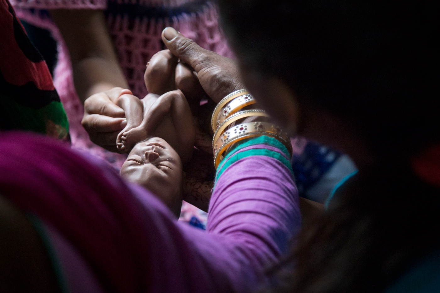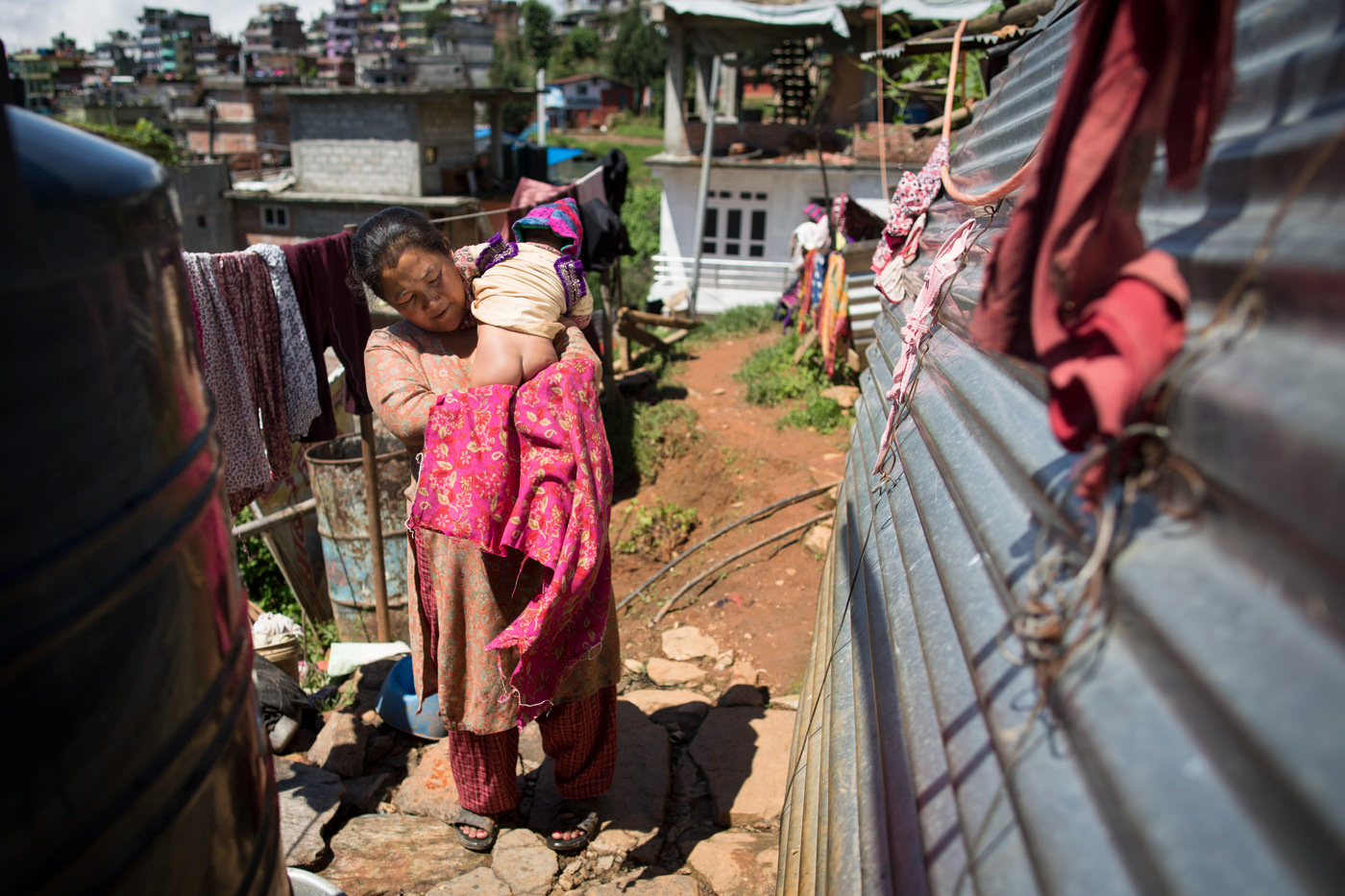 Reshu Thami, age 38, washes the backside of her youngest of her eight children, Esther, age 6 months outside their small shack in Dolakha, Nepal, July 16, 2017. (Photo Credit/Tara Todras-Whitehill/European Journalism Centre/Vignette Interactive)