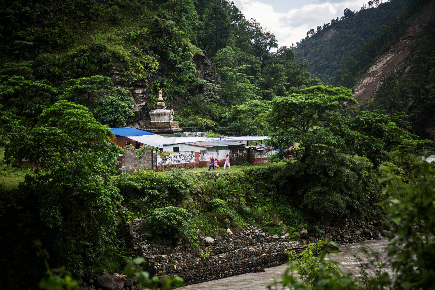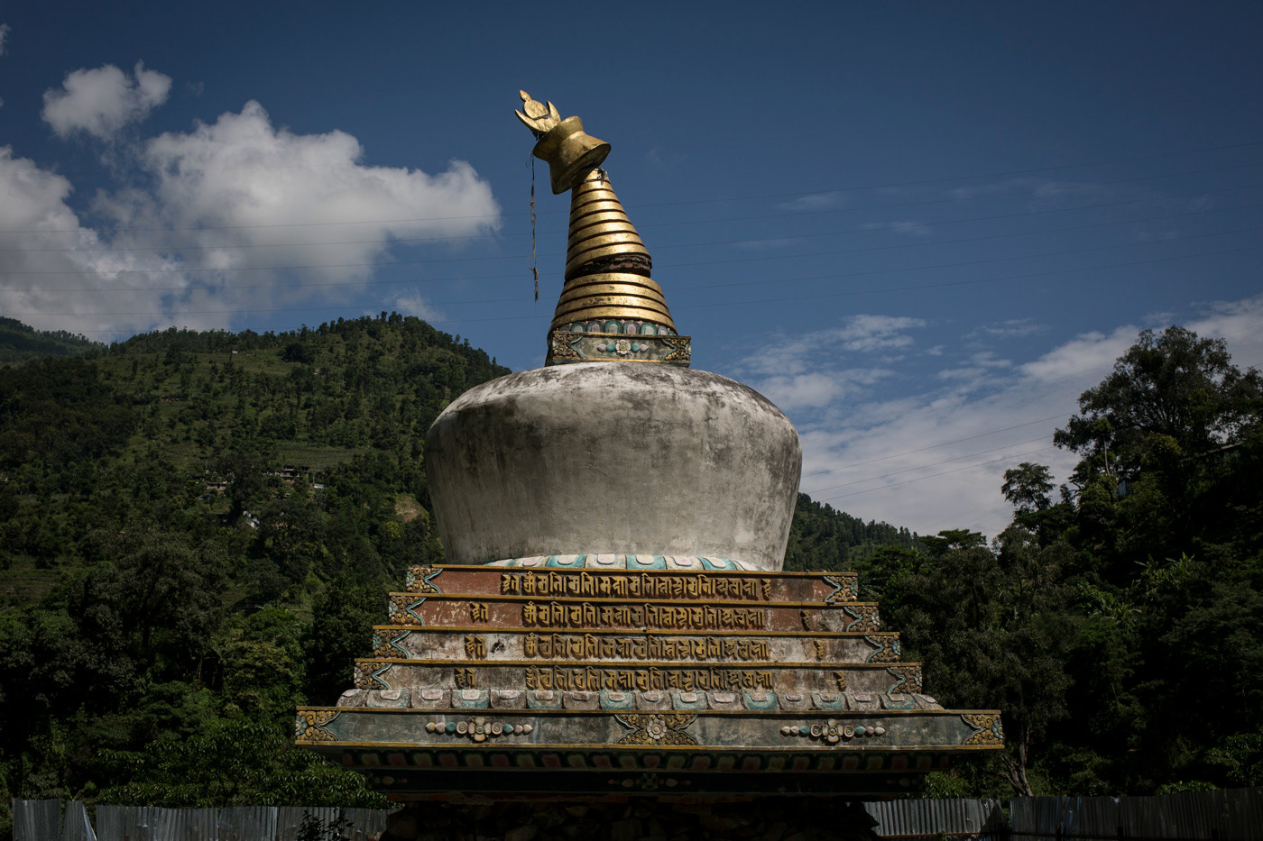 Nepalese Christians walk nearby a small Christian church and Hindu stupa after a lecture by Soman Rai, a pastor who founded the non-profit Voice of Fetus Nepal, who talked about why women shouldn't have abortions because it is killing a fetus, in the village of Shilaprabat, Sindhupalcholk district, Nepal, July 14, 2017. (Photo Credit/Tara Todras-Whitehill/European Journalism Centre/Vignette Interactive)